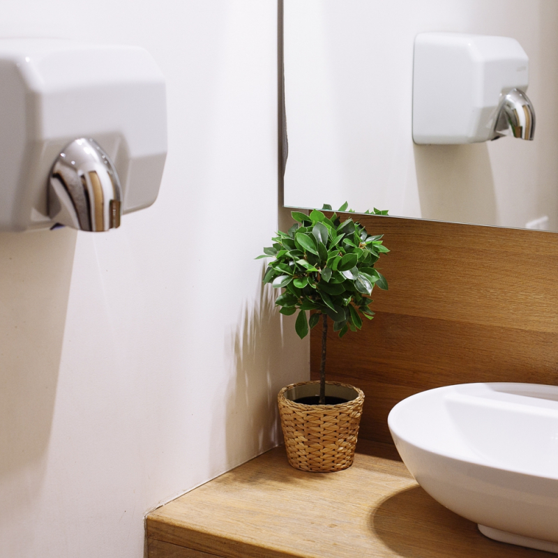 Электро прибор, нагревающий воздух и подающий его вниз для сушки влажных рук